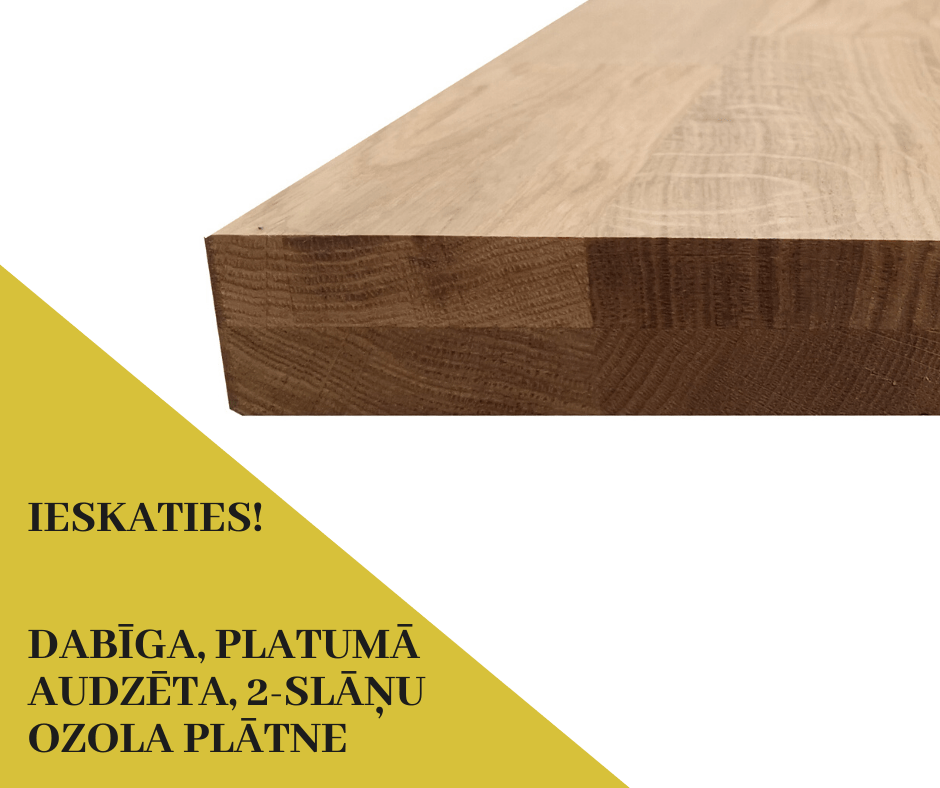 Lasīt vairākJaunums mūsu sortimentā! Garumā audzēta (stiķēta) 2-slānu ozola plātne, kvalitāte – A/A. Viendabīgs materiāls bez zariem un aplievas visā sķērsgriezumā. Augstas kvalitātes produkts, Lamelas platums – 70 mm. Loksnes izmērs: 4500x630x38 – skatīt šeit. Materiāls īpaši piemērots trepju vaigu un mēbeļu virsmu izgatavošanai. Loksnes izmērs: 3000x630x38 – skatīt šeit. Materiāls īpaši piemērots trepju pakāpienu un mēbeļu …